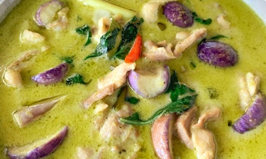 Our Original Green Thai Curry with Eggplant that only comes in one spice level. This is a Spicy dish made with Tradional thai chili paste. If you cannot handle the heat please do not order this dish.