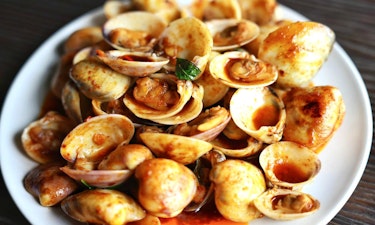Local Clams Stir Fried with Fresh Garlic, Spring Onions, and a Special Dried and Roasted Chili paste