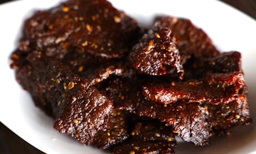 Marinated and Sundried Thai Beef Jerky Served with a Side of Sticky Rice