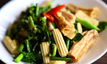 Stir Fried Medley of Vegetables with Fresh Chilies, Garlic, mushroom and Holy Basil