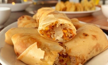 5 Golden Fried Mixed Vegetable Spring Rolls Stuffed with Glass Noodles